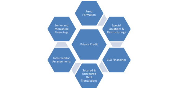 In the rapidly expanding private credit marketplace, Seward & Kissel’s Private Credit Group provides sophisticated and comprehensive legal advice with respect to a variety of credit strategies, including direct lending, distressed investments, special situations, rescue financing, specialty financing, fund financing, asset-based finance, structured finance, CLOs and venture debt. Our clients include private credit funds, institutional and high net worth individuals, family offices, portfolio companies, borrowers and other market participants engaging in a broad range of private credit transactions, such as senior secured and unsecured facilities, mezzanine and subordinated facilities, unitranche loans, co-investments, asset-based loans, convertible debt financings, preferred equity and more.