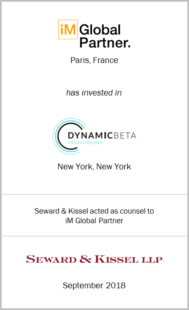 September 13, 2018 ― iM Global Partner announced its acquisition of a 45% interest in Dynamic Beta investments. Seward & Kissel was pleased to represent iM Global Partners in this investment management industry transaction.
